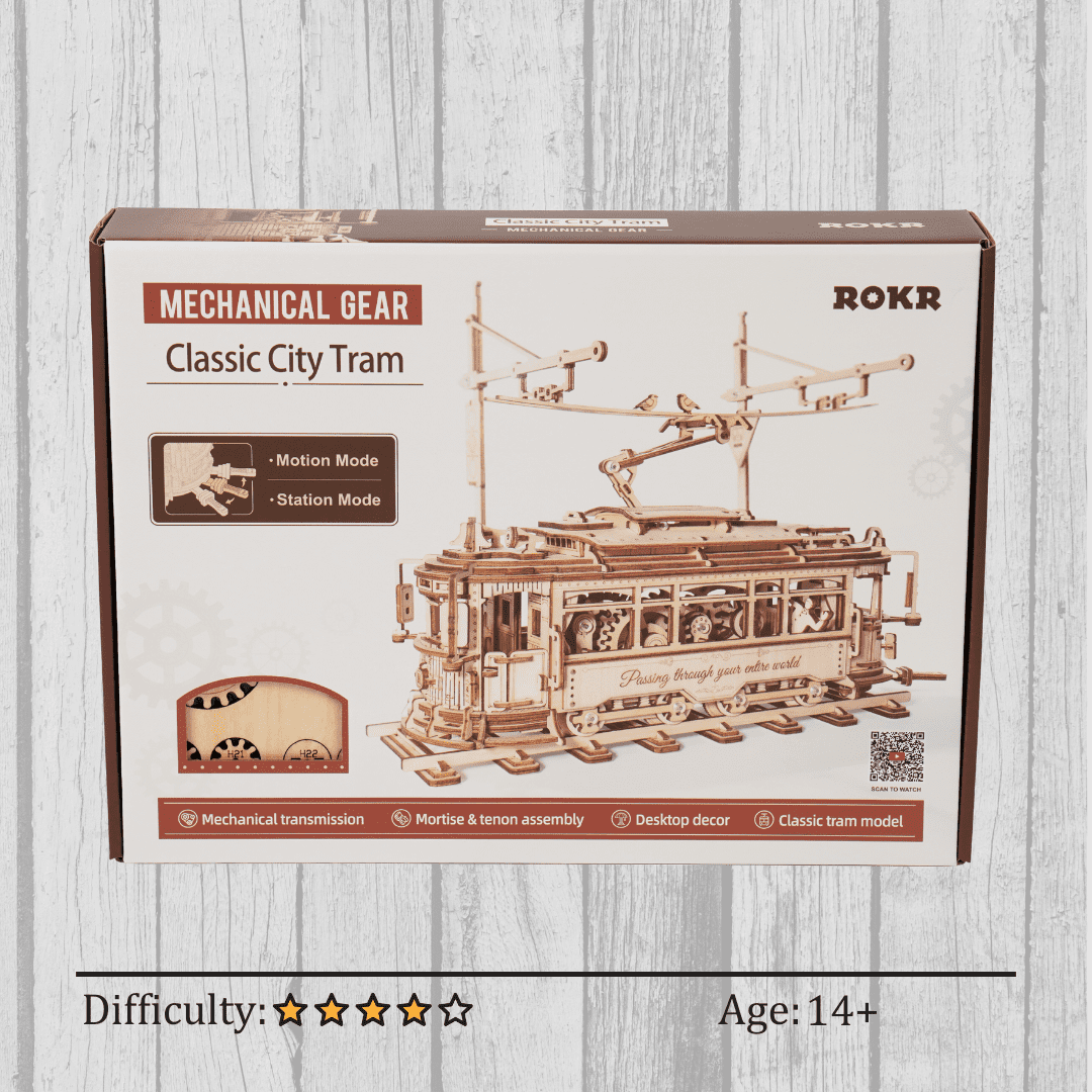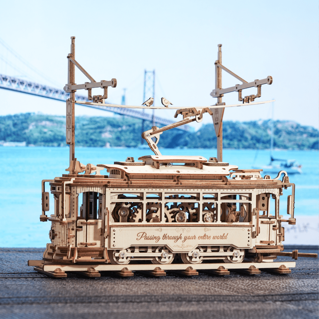 The Classic City Tram 3D Wooden Puzzle is a meticulously crafted scale model that beautifully replicates a vintage tram, an indispensable mode of transportation since the 19th century. Made from high-quality, eco-friendly wood, this puzzle offers two delightful ways to enjoy it: display it elegantly on its station or engage its moving parts by pulling the spring lever up to 12 times and setting the brake lever to the ON position, allowing it to glide smoothly on flat surfaces. As you assemble and play with this charming model, you can immerse yourself in the nostalgic allure of classic trams and imagine the picturesque experience of traveling through the streets of Lisbon. Perfect as a decorative piece or a thoughtful gift, the Classic City Tram 3D Wooden Puzzle combines historical charm with interactive fun, making it a captivating addition to any collection.