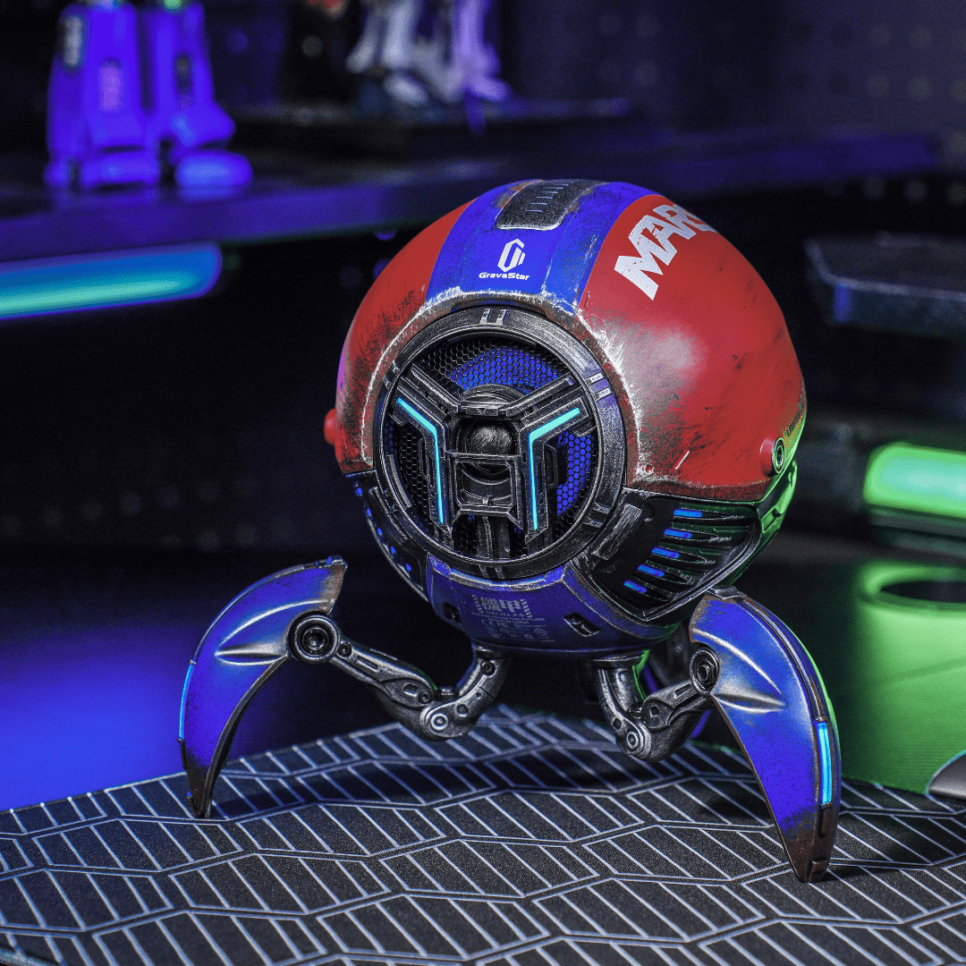 The Mars Pro Bluetooth Speaker Captain is a handcrafted masterpiece in striking blue and red, each uniquely crafted by skilled artisans. Its 20-watt dual speaker system delivers powerful, rich sound that fills any room, enhanced by a passive bass radiator for deep, clear bass. With customizable RGB lighting, you can set the mood with six solid or pulsing colors, or let it sync to your music's beat. Enjoy up to 15 hours of playtime on a single charge, with easy USB Type-C recharging. Bluetooth 5.0 and True Wireless Stereo support make it simple to pair two speakers for an immersive audio experience. The intuitive touch control on top allows you to adjust the volume effortlessly.
