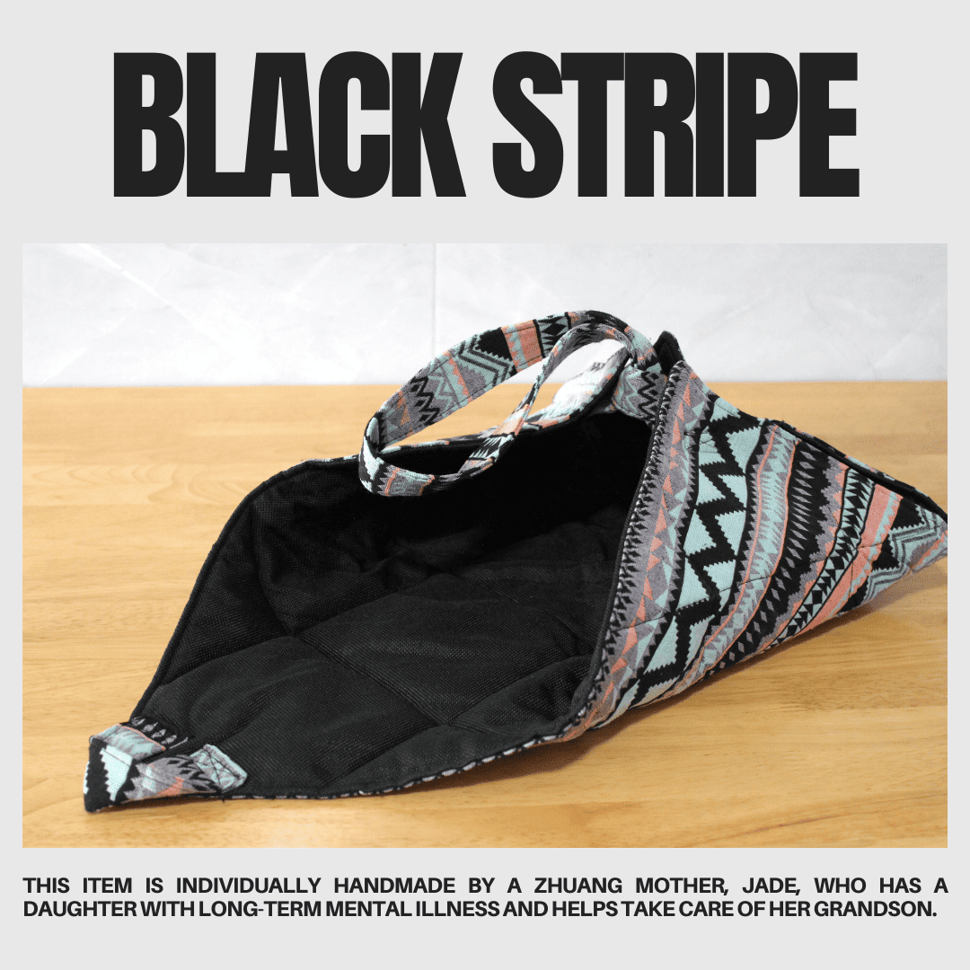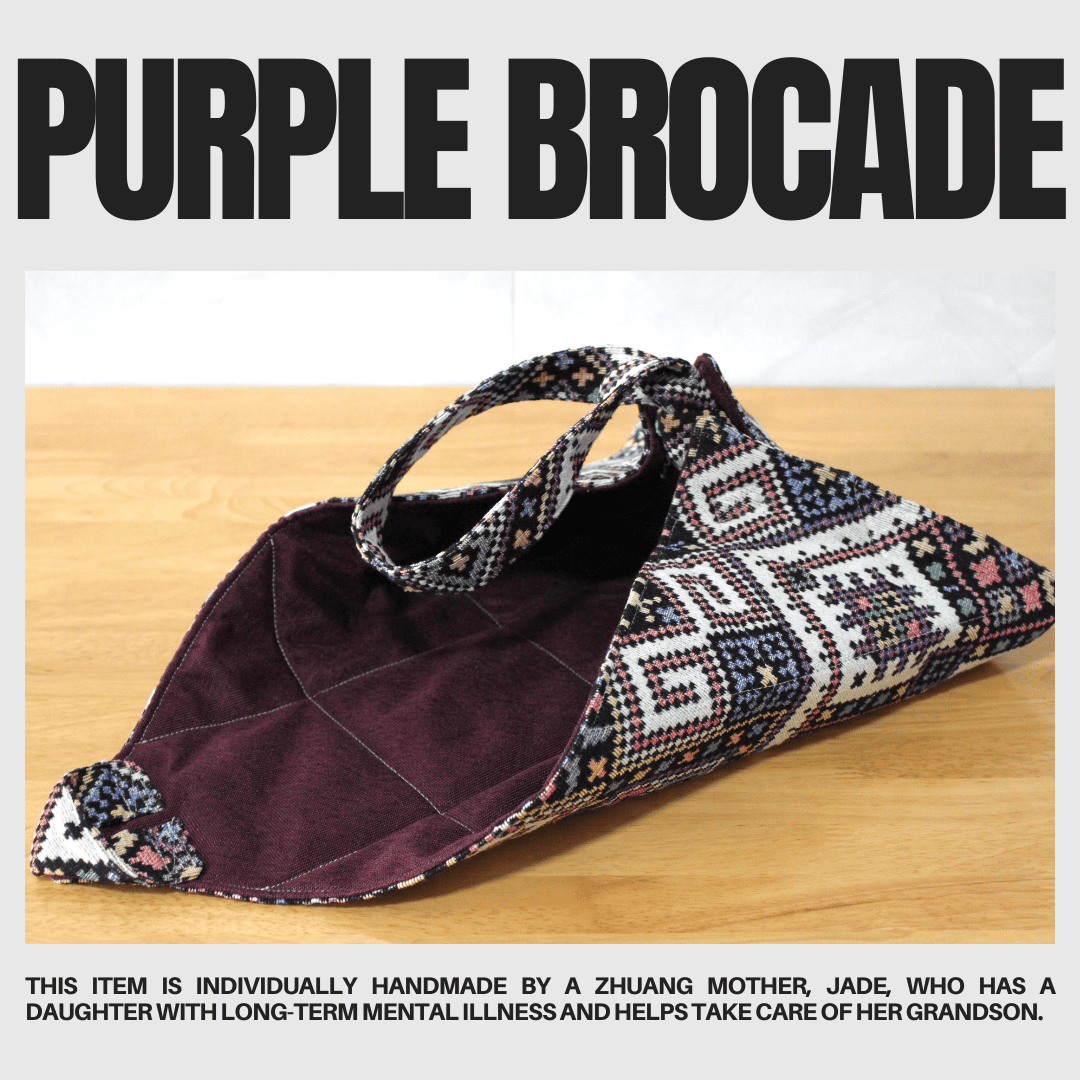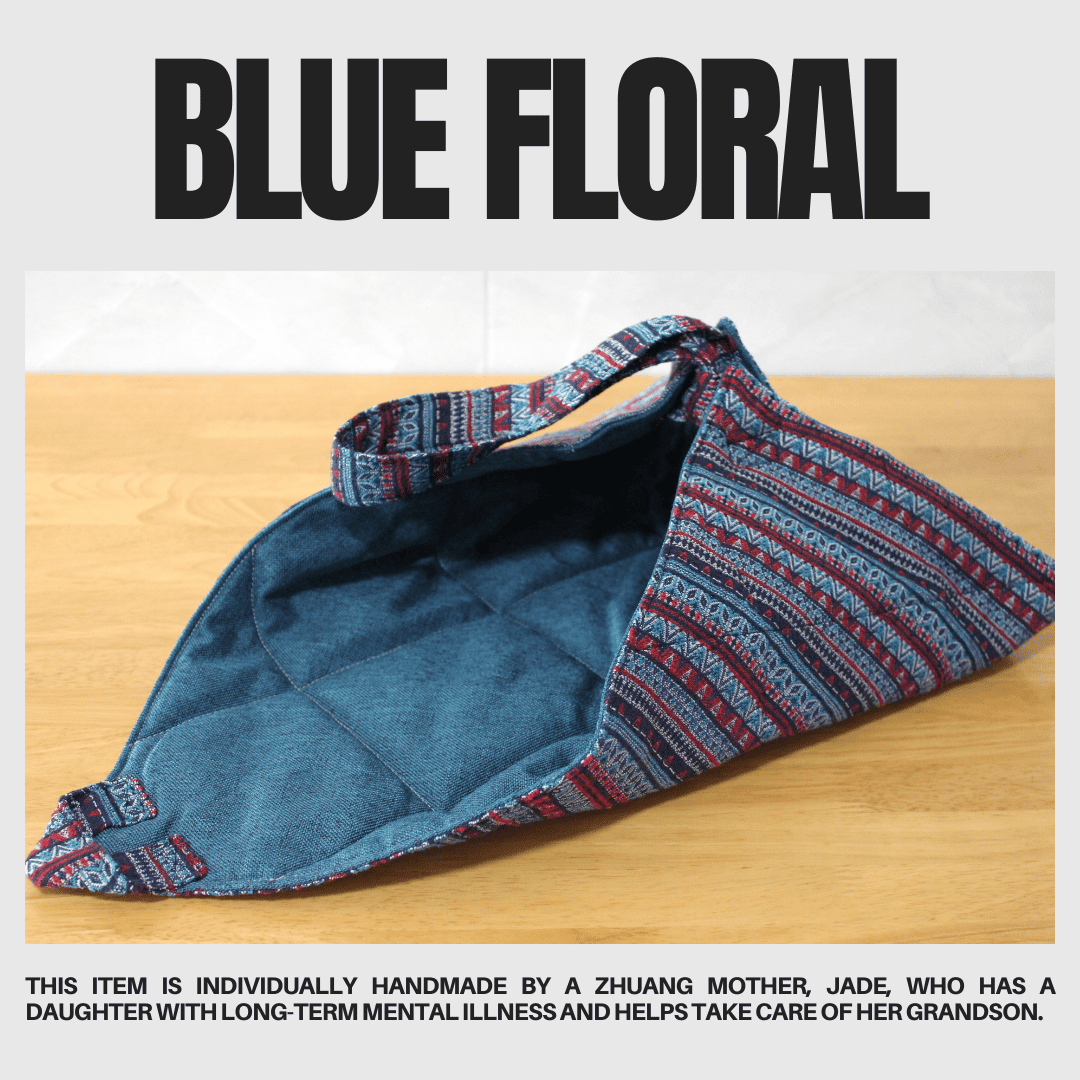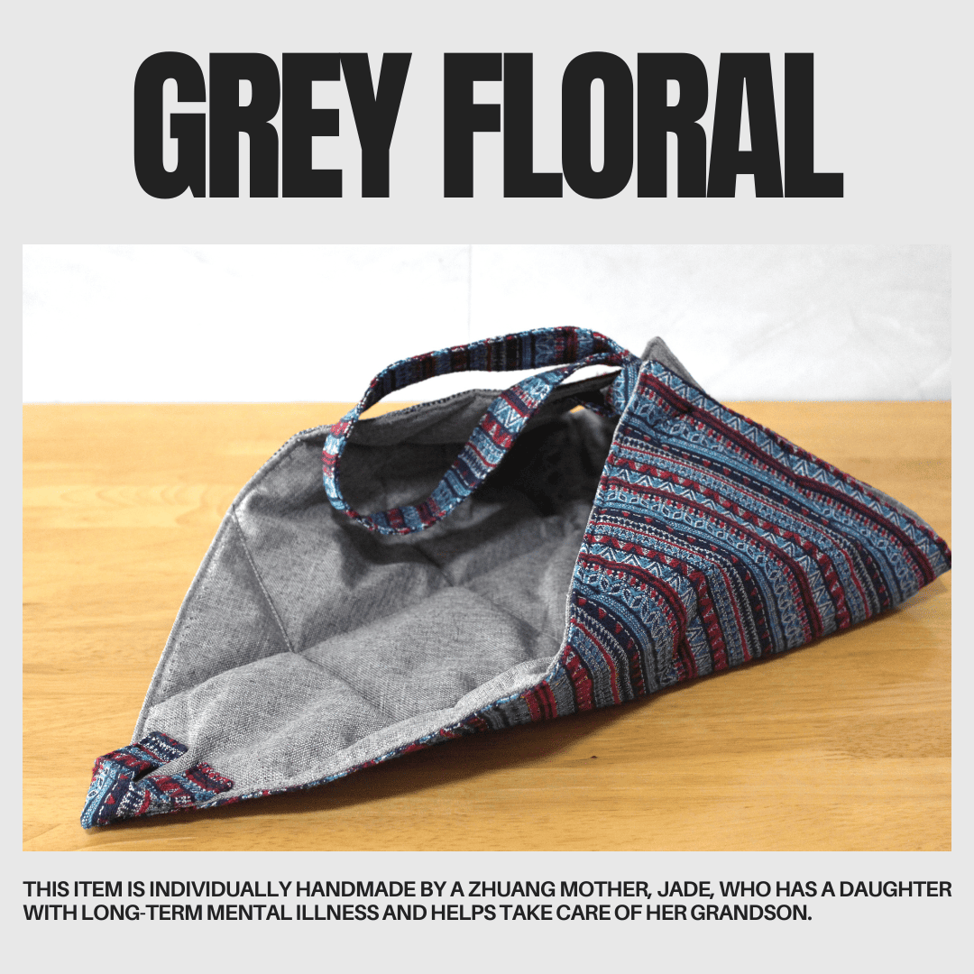 Each item is individually handmade by a Zhuang mother, Jade, who has a daughter with long-term mental illness and helps take care of her grandson.