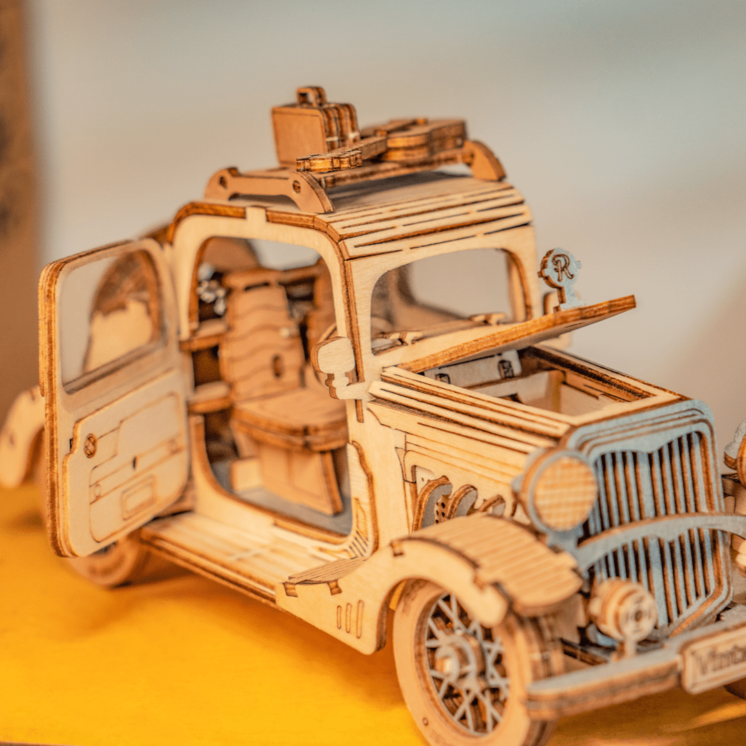 The Vintage Car 3D Wooden Puzzle is a meticulously designed model kit that captures the elegance and sophistication of classic automobiles. Crafted from high-quality, eco-friendly wood, this puzzle features precision laser-cut pieces that assemble effortlessly without the need for glue or adhesives. The detailed design showcases the timeless beauty of a vintage car, complete with intricate components like the iconic grille, headlights, and spoked wheels. Perfect for adults, teens, and older children, this puzzle offers a challenging yet rewarding building experience that stimulates creativity and problem-solving skills. Ideal as a distinctive gift, the Vintage Car 3D Wooden Puzzle provides hours of enjoyable entertainment while serving as a stunning decorative piece, celebrating the golden age of automotive design.