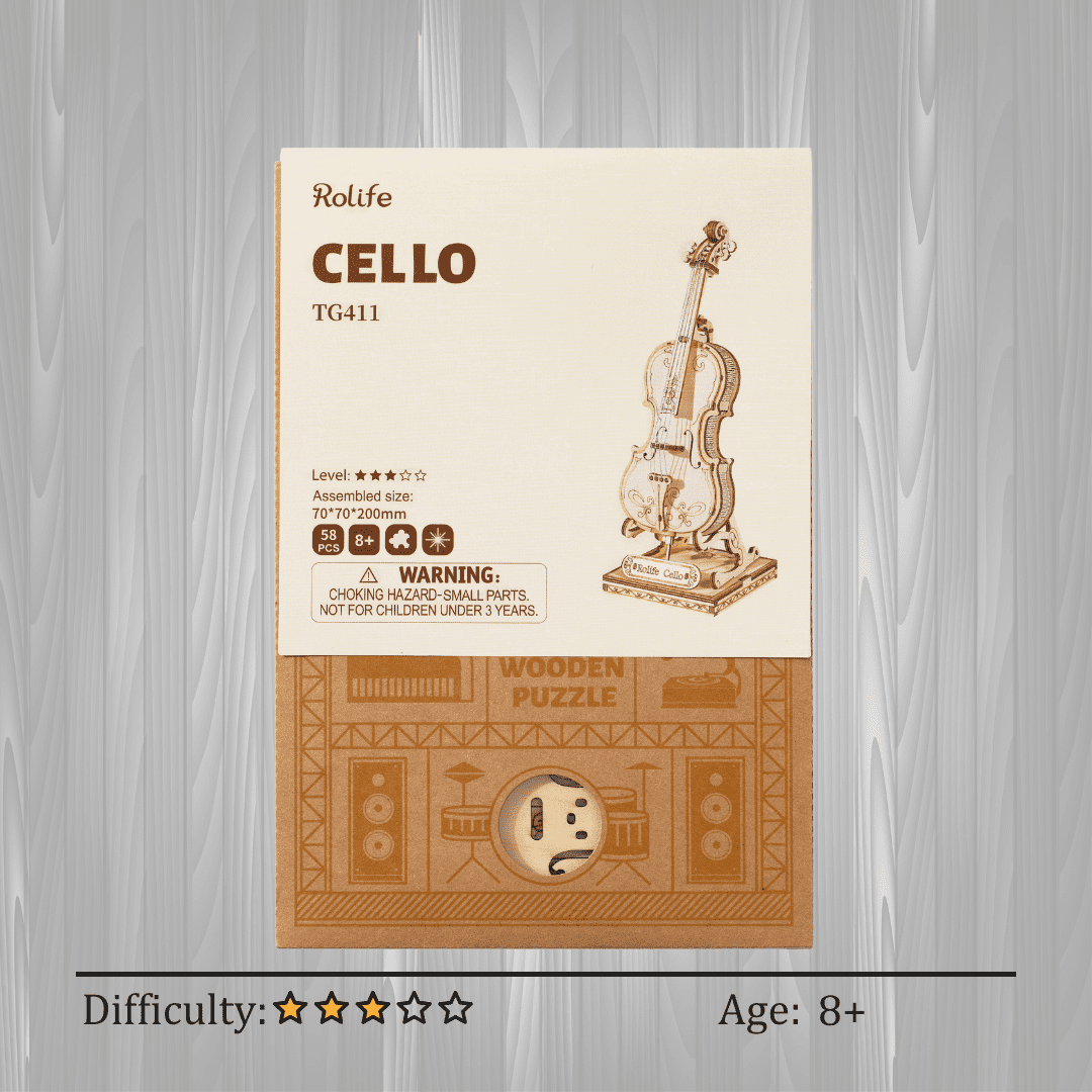The Cello 3D Wooden Puzzle is an elegant and meticulously crafted model kit that brings the beauty and sophistication of a classic cello to life. Made from high-quality, eco-friendly wood, this puzzle features precision laser-cut pieces that assemble effortlessly without the need for glue or adhesives. The intricate design showcases the graceful curves, f-holes, and fine details of the cello, capturing the essence of this timeless musical instrument. Perfect for adults, teens, and older children, this puzzle offers a rewarding and educational building experience that enhances creativity and problem-solving skills. Ideal as a unique gift, the Cello 3D Wooden Puzzle provides hours of engaging entertainment while serving as a stunning decorative piece, celebrating the artistry and craftsmanship of traditional string instruments.