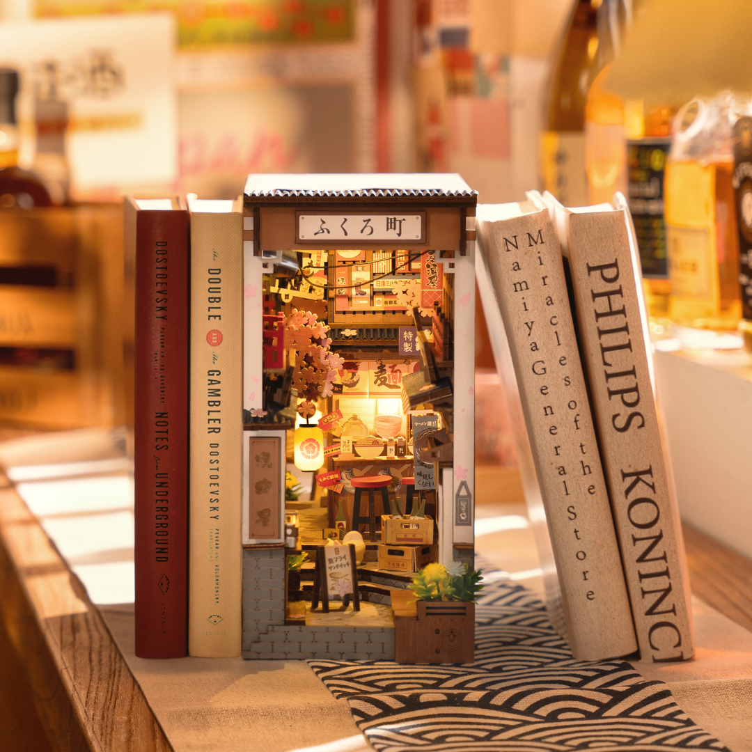Wander through the vibrant streets of Japan with the Sakura Wine Alley Book Nook. This 249-piece DIY book nook invites you to step into a lantern-lit path filled with tradition, flavour, and the charm of authentic street food culture.